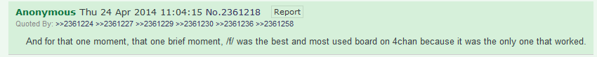 It's only a testament to the board. /f/ was dead, is dead, and yet fully alive.
